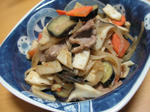 豚肉とナス、ネギ、エリンギ、人参の炒め物。