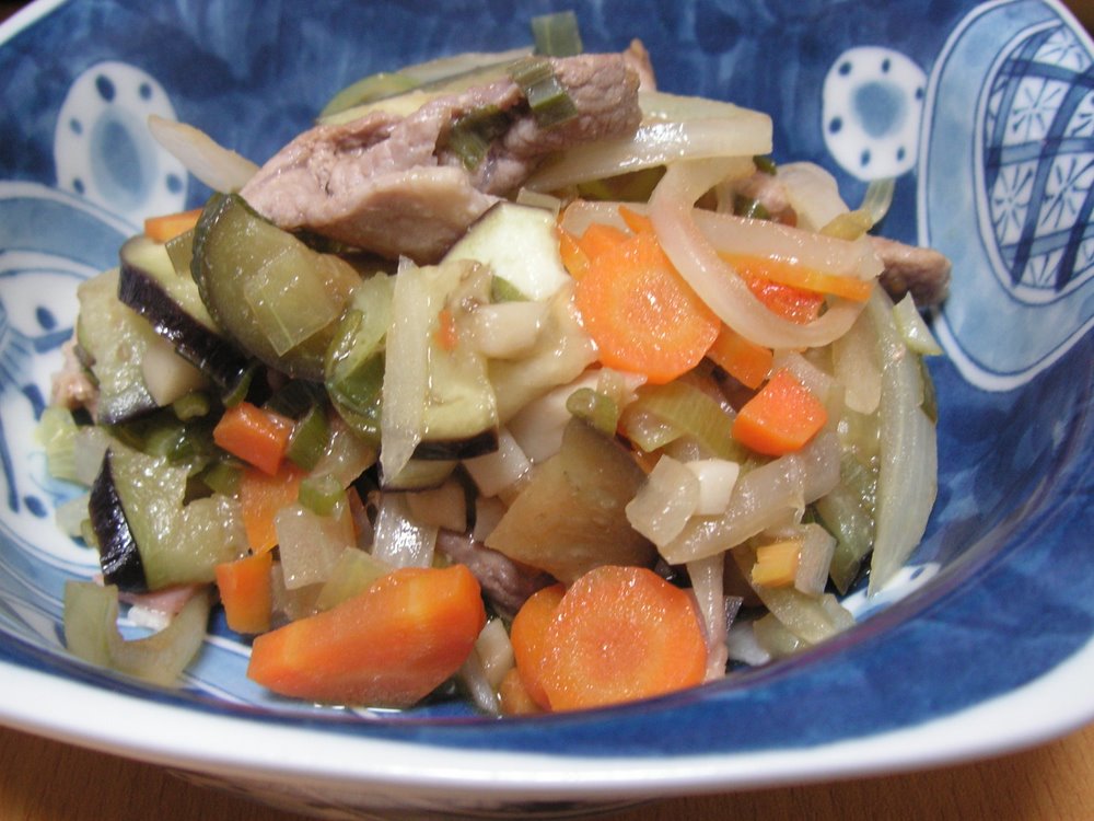 スープはカブと、カブの葉、にんじん、たまねぎ、そして卵です