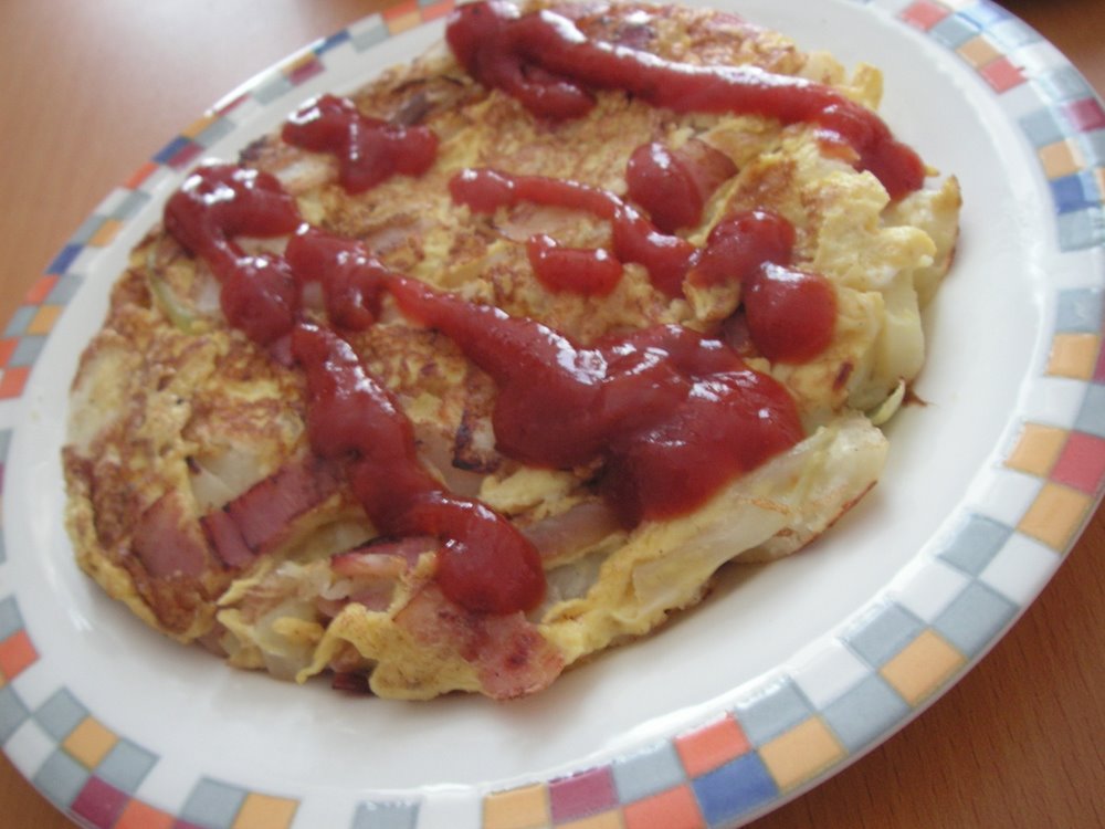 ベーコンと玉ネギの薄切りを炒めて、レンジでふかしたジャガイモを
