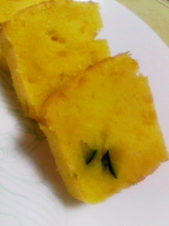 かぼちゃは裏ごし・・・じゃなくてフォークでつぶして、皮のついた部分を